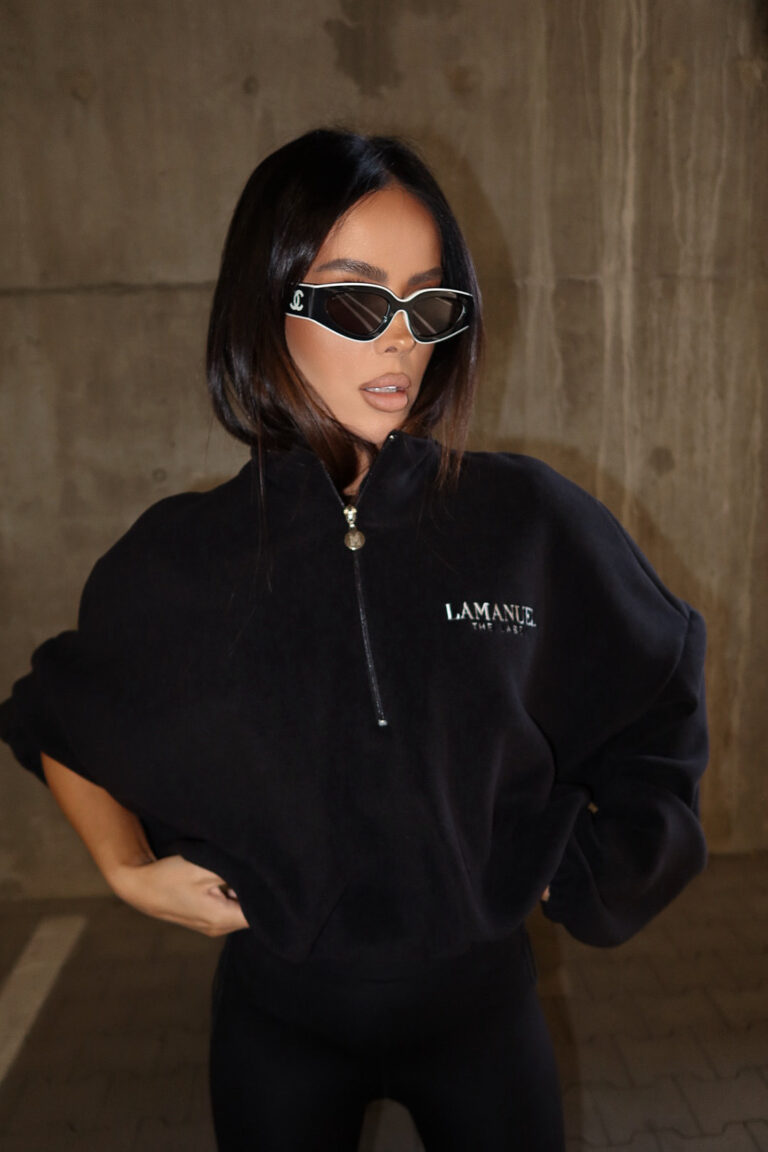 Oversize’owa bluza wykonana z grubszego, ciepłego polaru, który świetnie sprawdzi się w chłodniejsze dni. Materiał jest miękki, przyjemny w dotyku i dobrze trzyma ciepło. Model z krótkim zamkiem i wysokim kołnierzem, który możesz postawić lub odpiąć dla swobodniejszego looku. Z przodu i na plecach tonalny haft z logo LAMANUEL. Dół bluzy regulowany – można ją nosić luźno lub ściągnąć troczkiem. Dzięki uniwersalnemu, luźnemu krojowi pasuje również na sylwetki do XL.