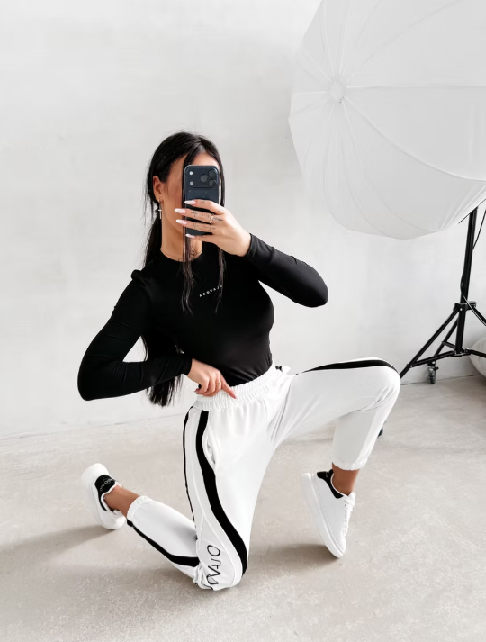 • Połącz bluzkę z dresowymi spodniami lub legginsami Olavoga i sneakersami na platformie. To idealny set na siłownię, spacer czy weekendowy wyjazd.