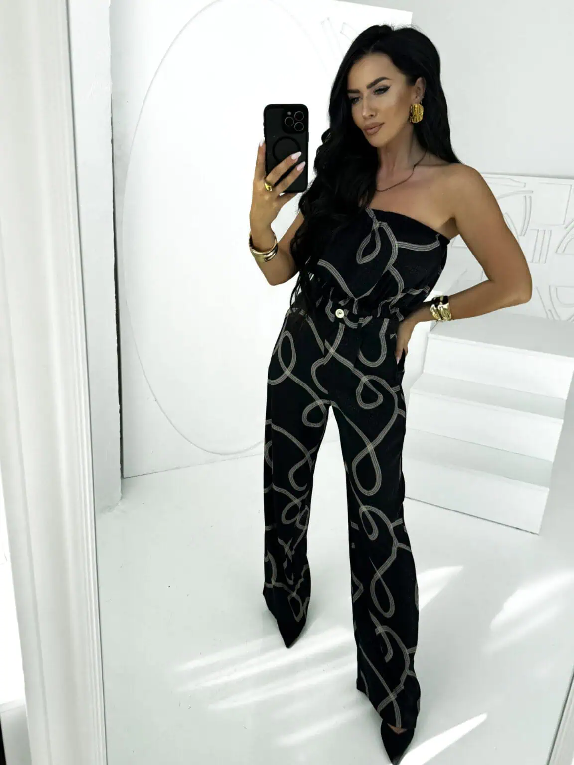 Komplet 3 częściowy czarny we wzory.