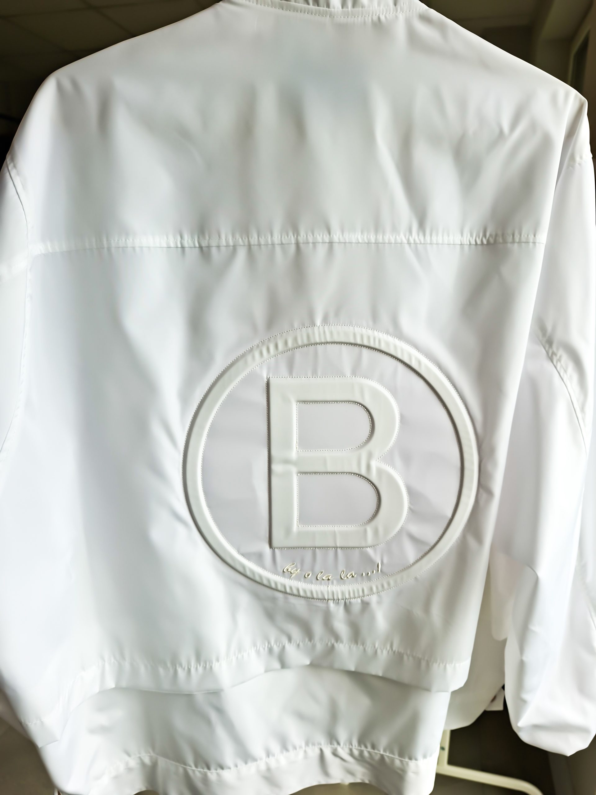 Duże logo z tyłu, wykończona złotymi guzikami.
