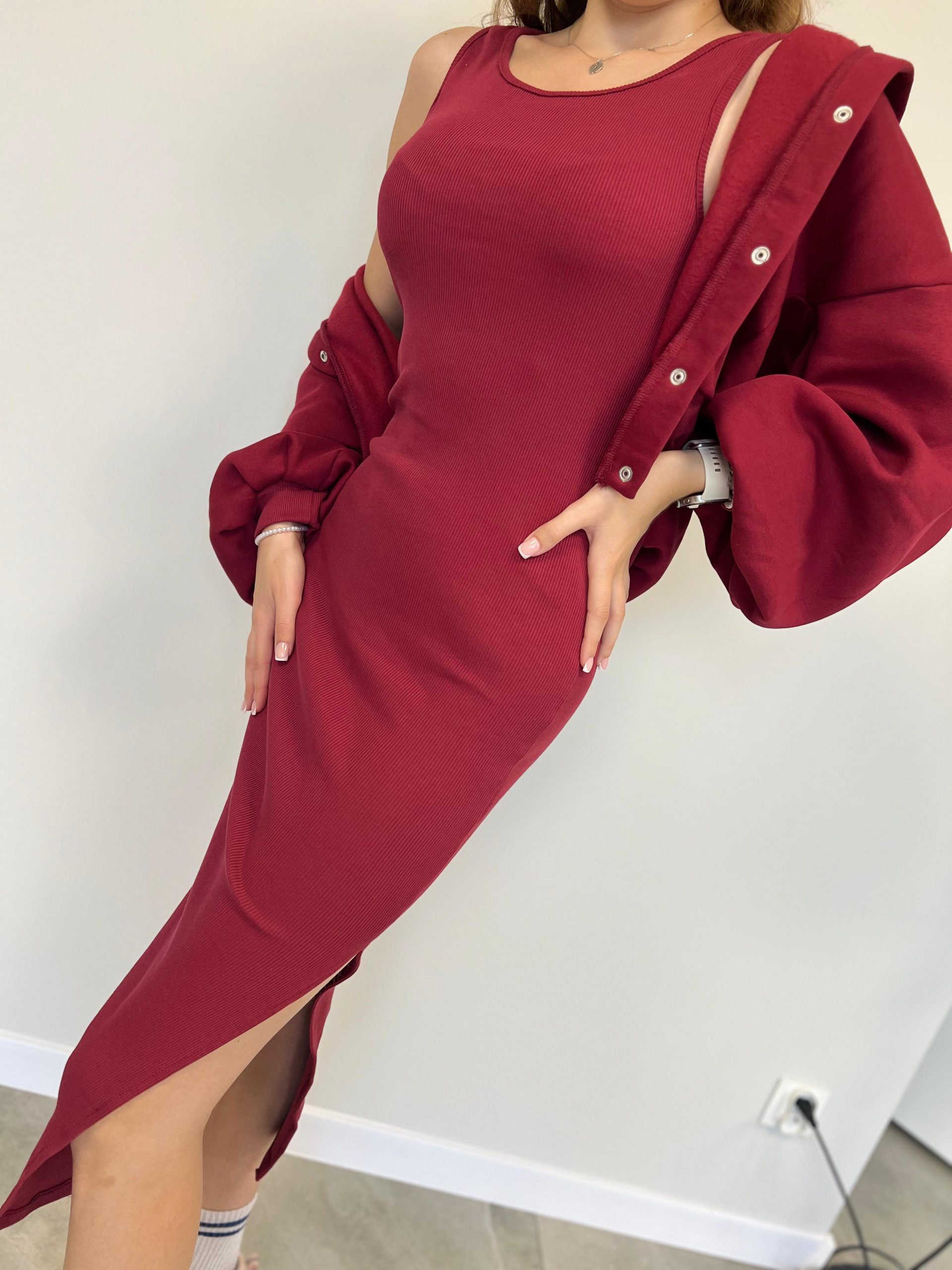 Bluza rozpinana, sukienka dopasowana, prążek.