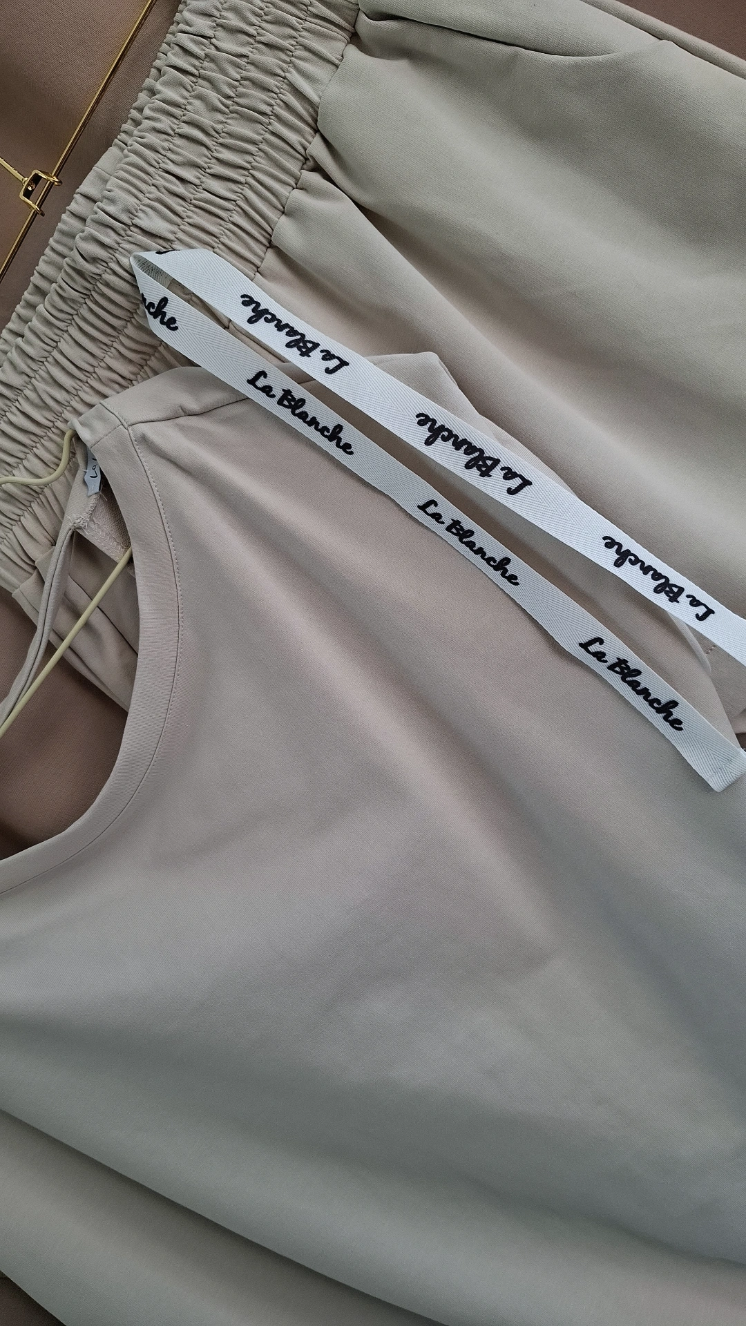 Komplet dresowy krótki. Bluzka z wycięciem na plecach, wiązane spodenki.