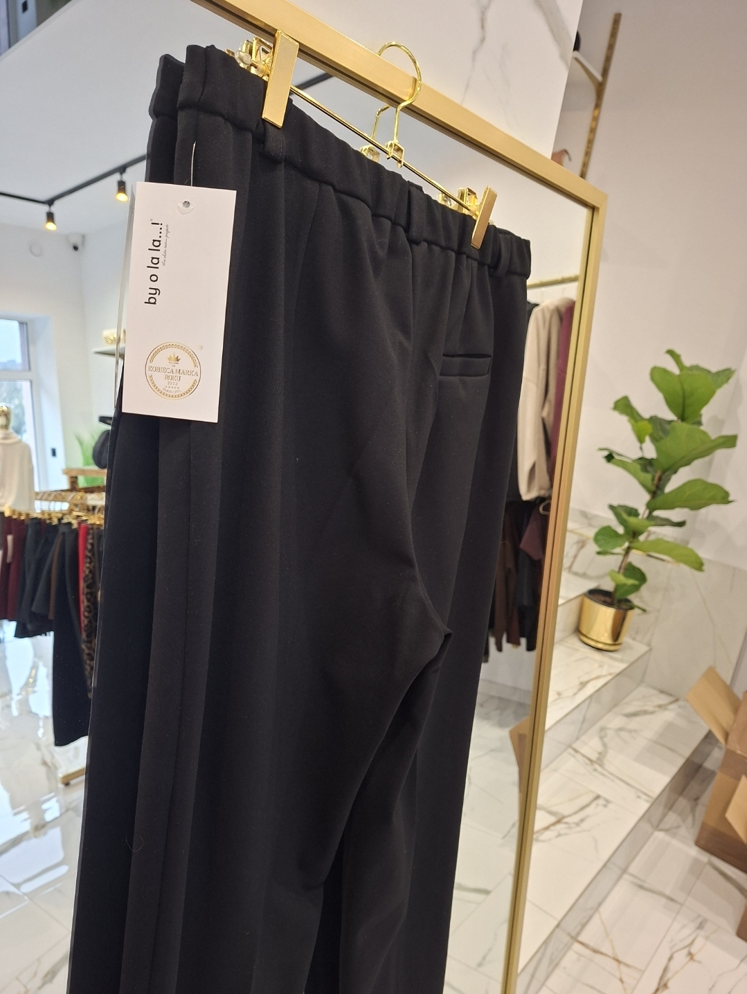 Spodnie BY O LA LA o eleganckim kroju. Z tyłu spodni w pasie została wszyta guma. W kant.