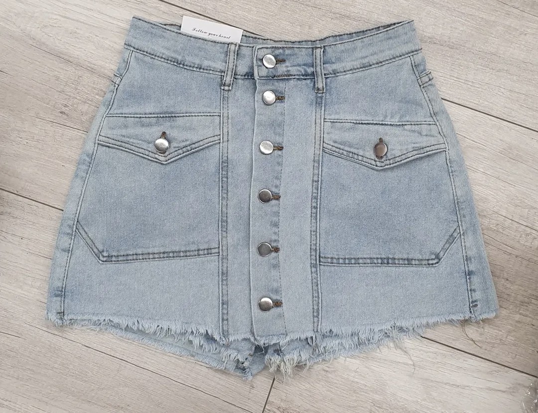 Spódnico/spodenki z kieszeniami.Srebrne guziki z przodu.90% cotton, 10% poliester.